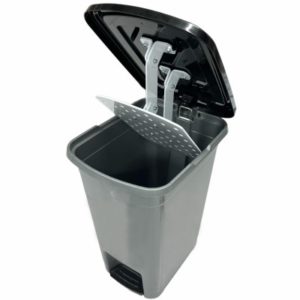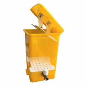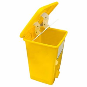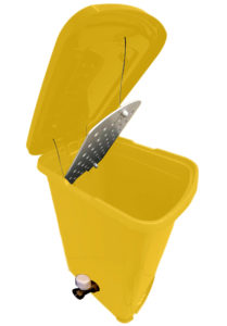 Педальный контейнер с прессом и краном для химического обеззараживания.